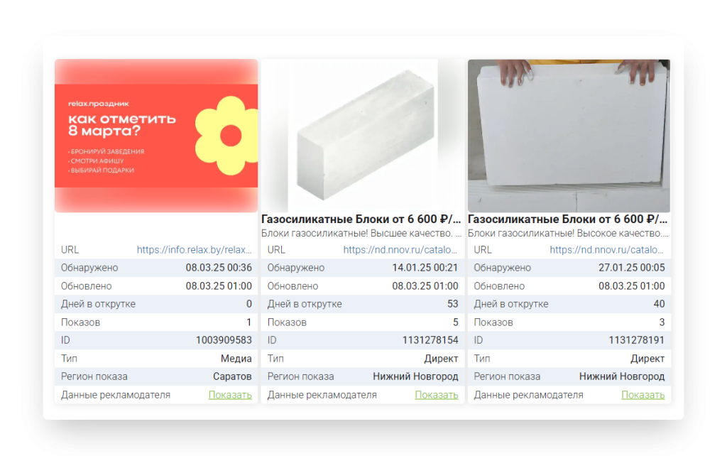 • Позволяет увидеть, как выглядят рекламные объявления конкурентов и какие из них наиболее эффективны.