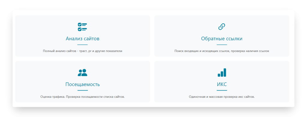 Средство проверки посещаемости сайта, Проверка профиля компании, Инструмент для работы с ключевыми словами, Проверка технологий (CMS), поиск топовых сайтов в своей нише и другие.