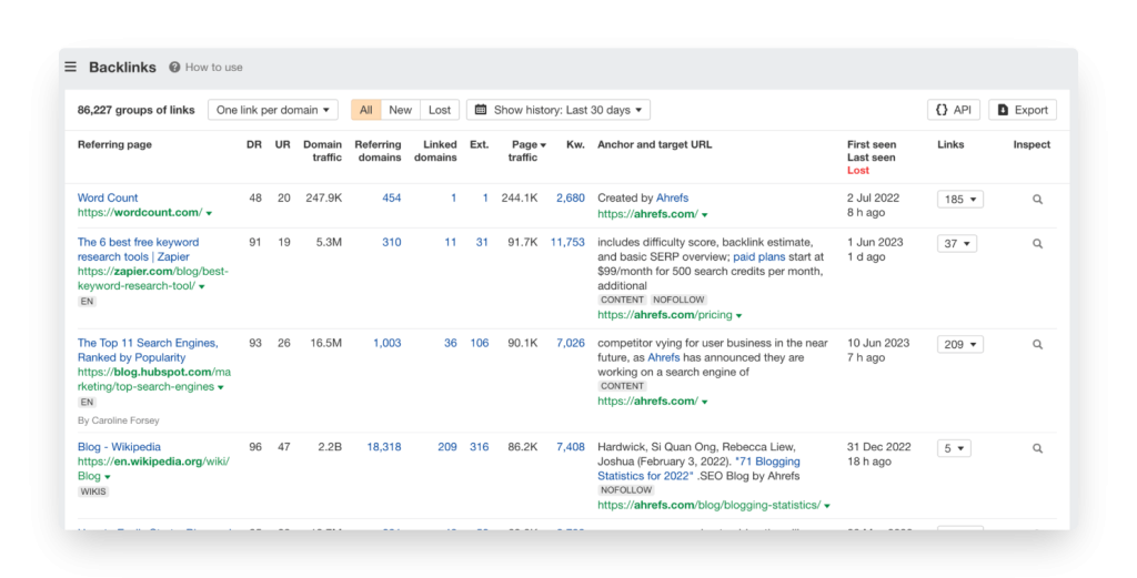 Считается одним из лучших сервисов для SEO-анализа. Позволяет оценить качество и количество входящих ссылок. Доступен в России, но потребуется оплата картой, а это уже труднее сделать из-за санкций.