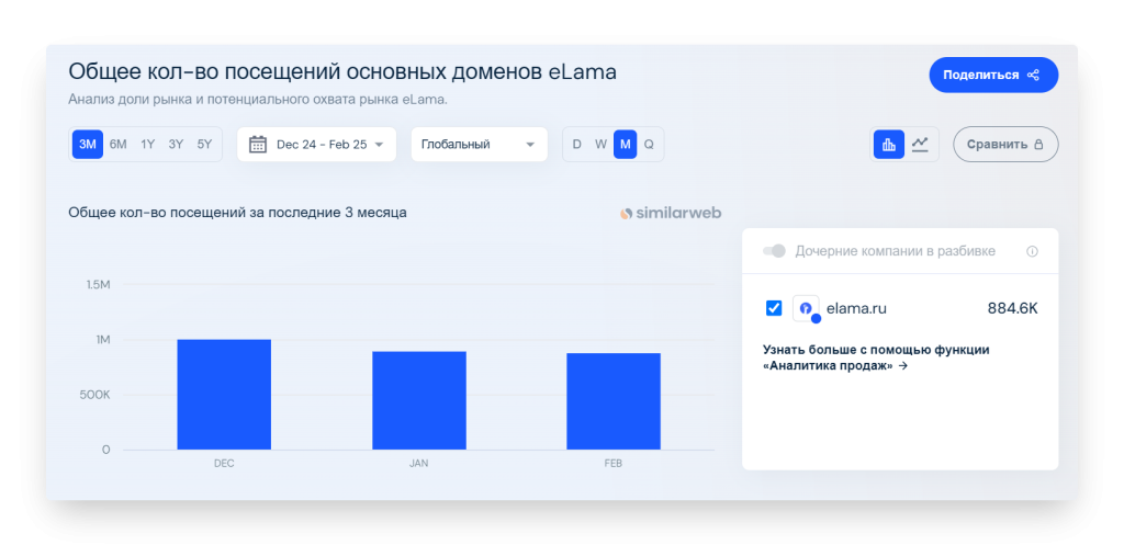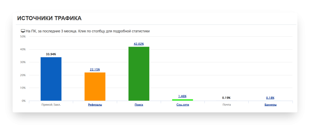 • Предоставляет подробную информацию о количестве и источниках трафика для любого сайта.
