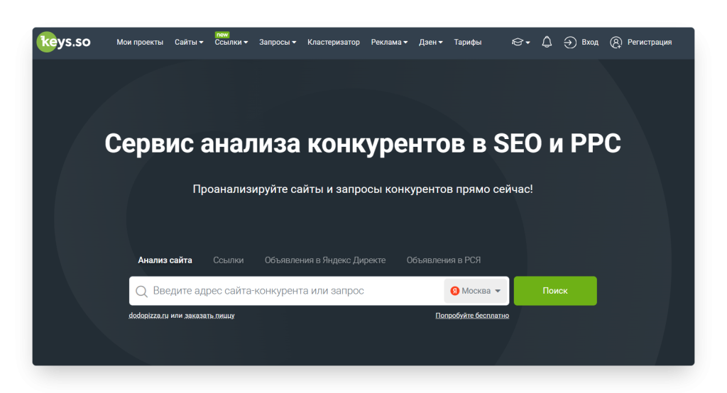 Анализ конкурентов, Сравнение доменов, Умный подбор запросов, Рейтинг доменов